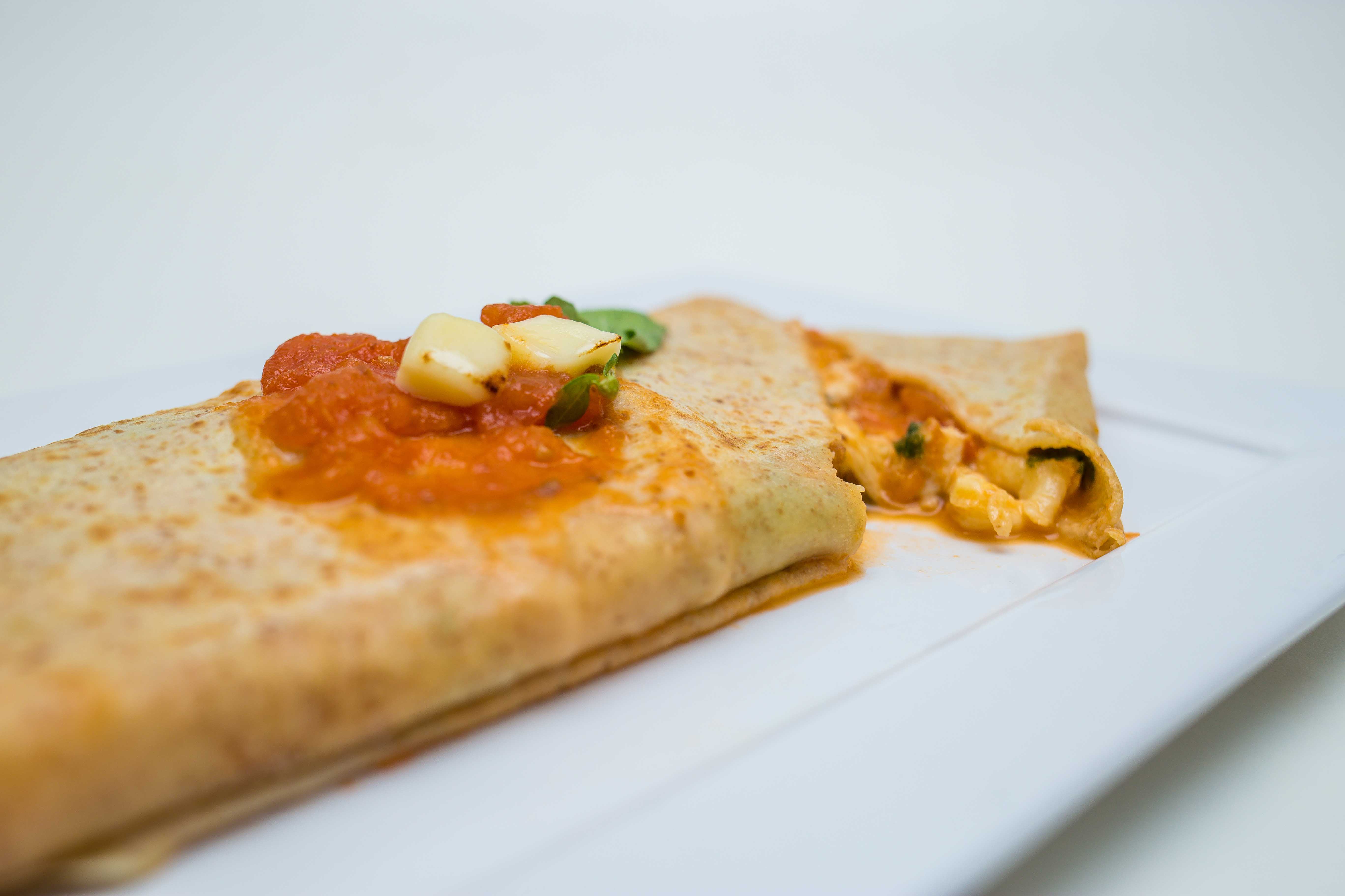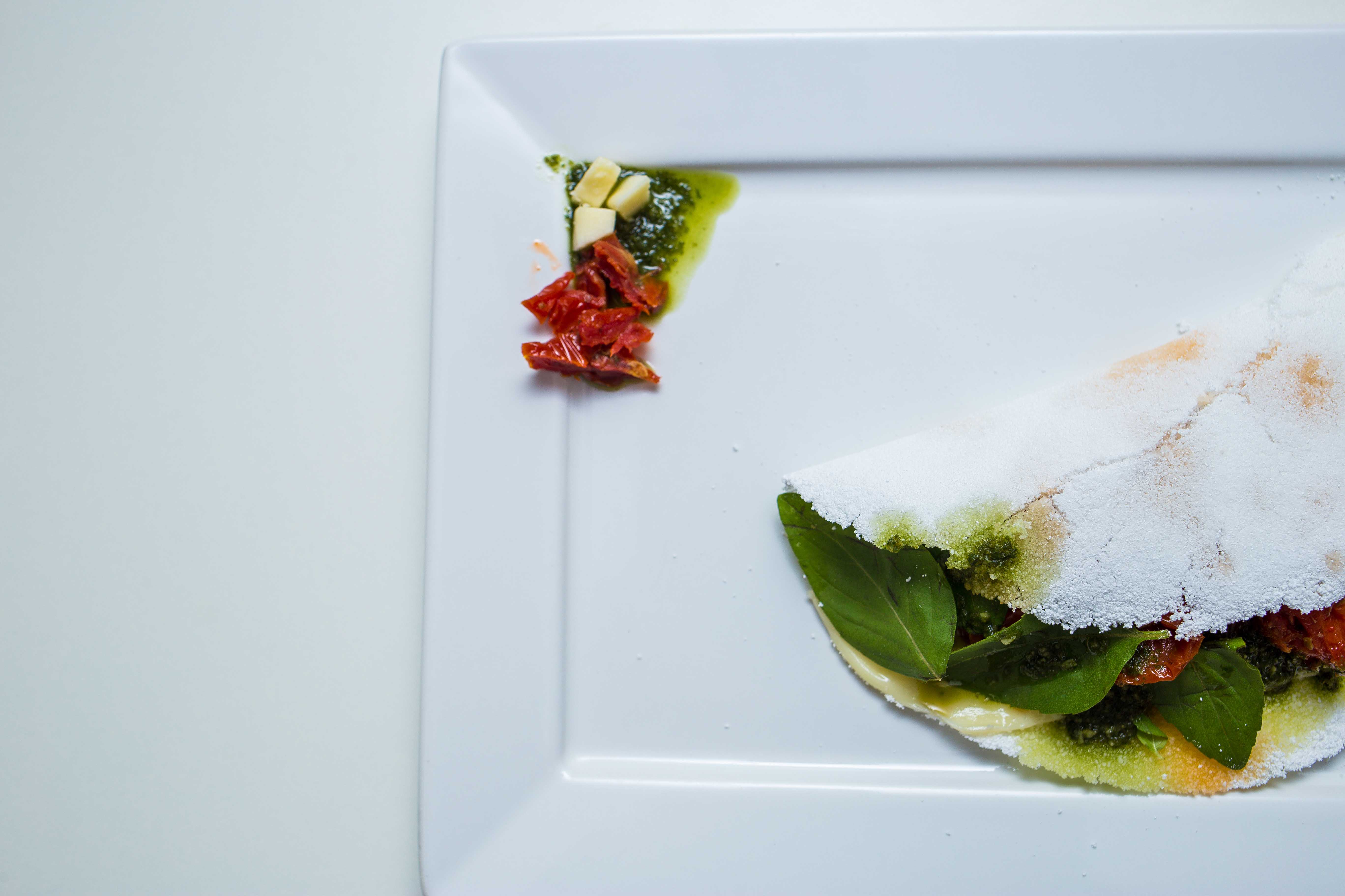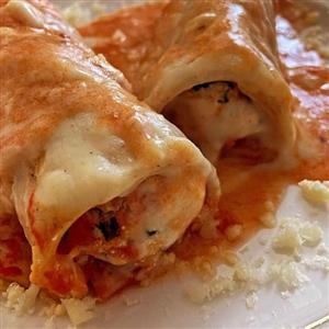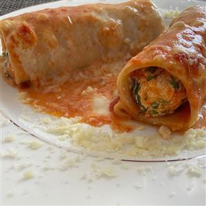 Canelone de massa integral recheado de ricota e espinafre ao molho bechamel e pomodoro. Porção de 350g (SERVE 1 PESSOA)